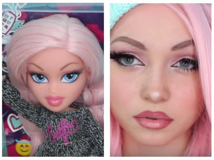 I used to love playing with Bratz dolls, so the child in me can appreciate the nostalgia and humor that is within this. But, I also have mad respect for these incredible makeup skills.