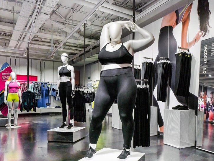 Nike, with a recent renovation of their location in London, has revealed a whole floor dedicated to women who work out, housing mannequins of every size. Instead of hiding their plus-size athletic wear in the back or by the picked-over clearance rack, the retailer has chosen to display it proudly on mannequins with bodies that are more representative of the people who would wear it.